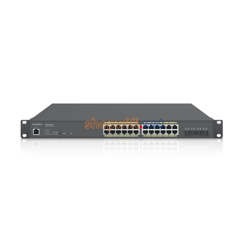 EnGenius Cloud Managed Layer 2+ Switch ECS1528P features 24 Gigabit PoE+ ports and 4 10G SFP+ port uplink ports with 240W PoE budget. Its enterprise-class features optimize network efficiency and offer robust security with Voice-VLAN support. The switch also extends PoE Ethernet cable deployment range up to 250 meters, auto-reboots PoE power for failed camera, and provides a steady supply of PoE power during switch upgrades. Ideal for cost-conscious SMBs.